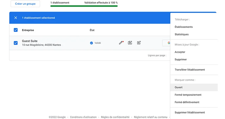 Dès cette action effectuée, vos actions et accès ne sont plus restreints. Votre compte professionnel Google My Business centralise la gestion de l’ensemble de vos points de vente.