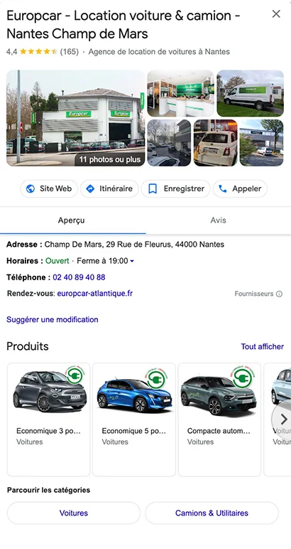 et sur Google Maps, lors des recherches de proximité (“garage à Nantes”, “boulangerie ouverte près de moi”).