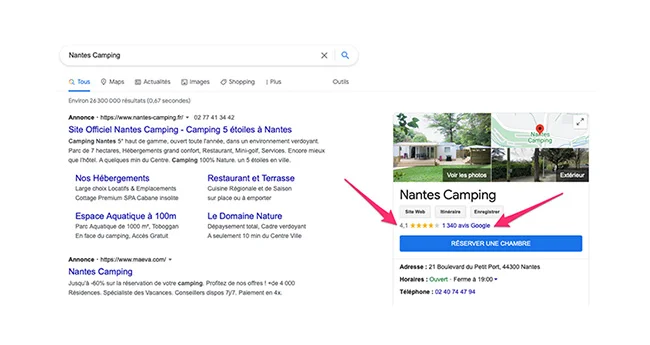 Requête "Nantes Camping" effectuée en juillet 2021