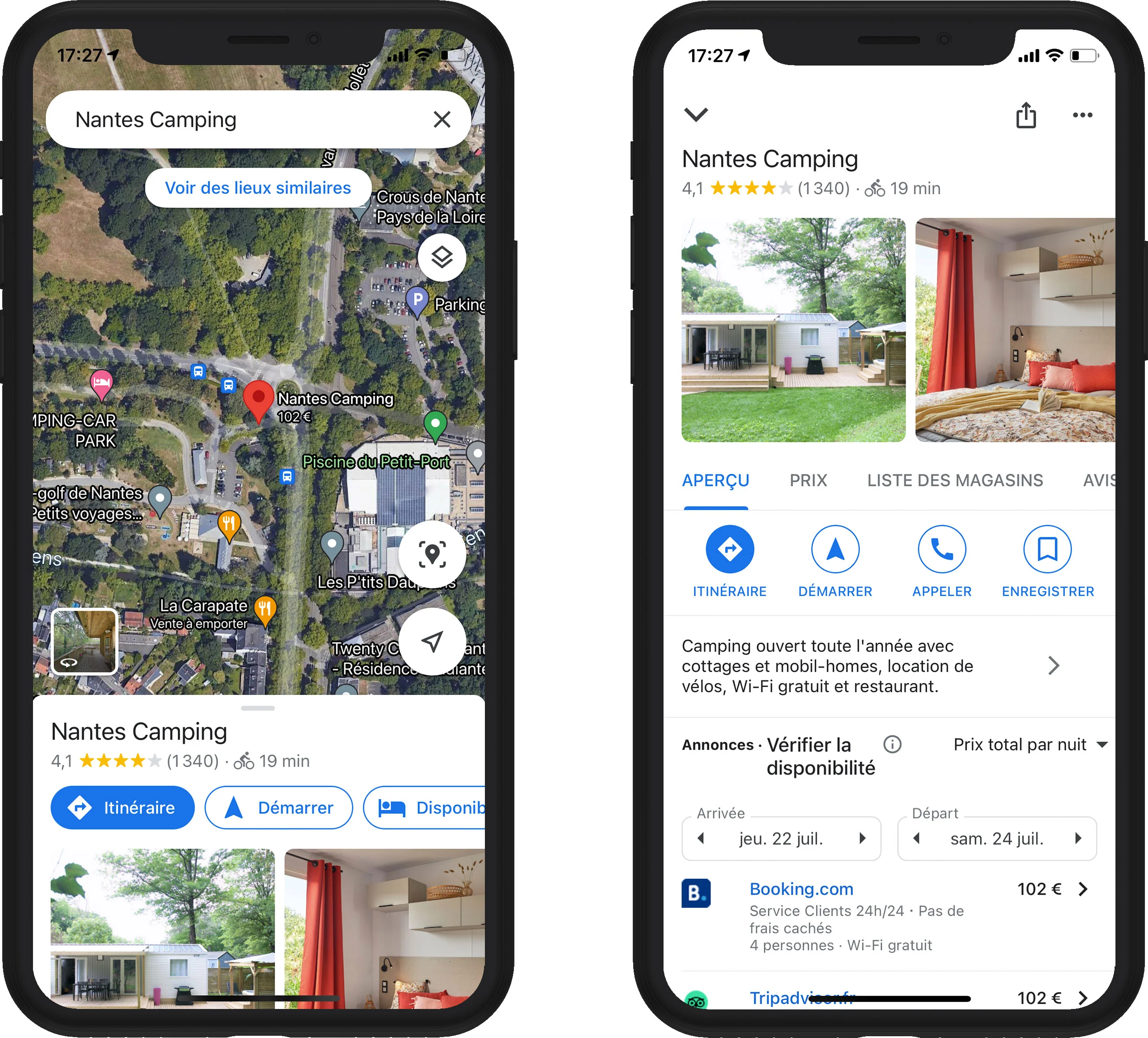 "Nantes Camping" sur Google Maps en juillet 2021