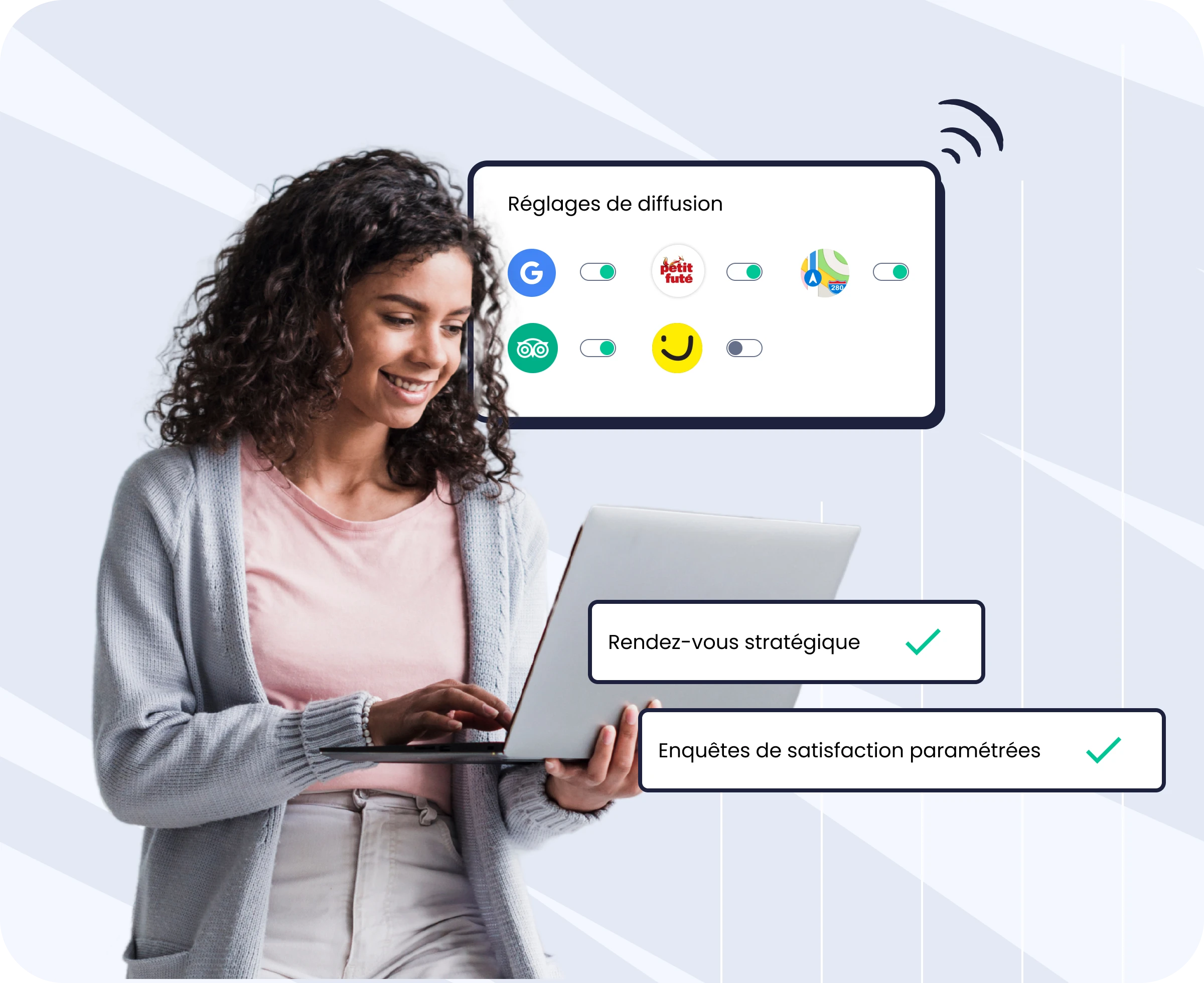 En savoir plusCentralisation, collecte, diffusion, analyse, réponse...Pilotez vos avis de A à Z sur une seule et même plateforme.