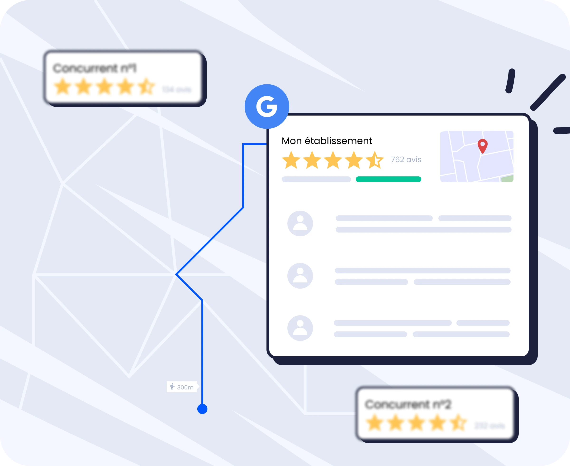 Suivez les avis en ligne et la performance des fiches Google d’un ou de plusieurs de vos concurrents. Profitez d’une vue globale, et des vues détaillées sur :