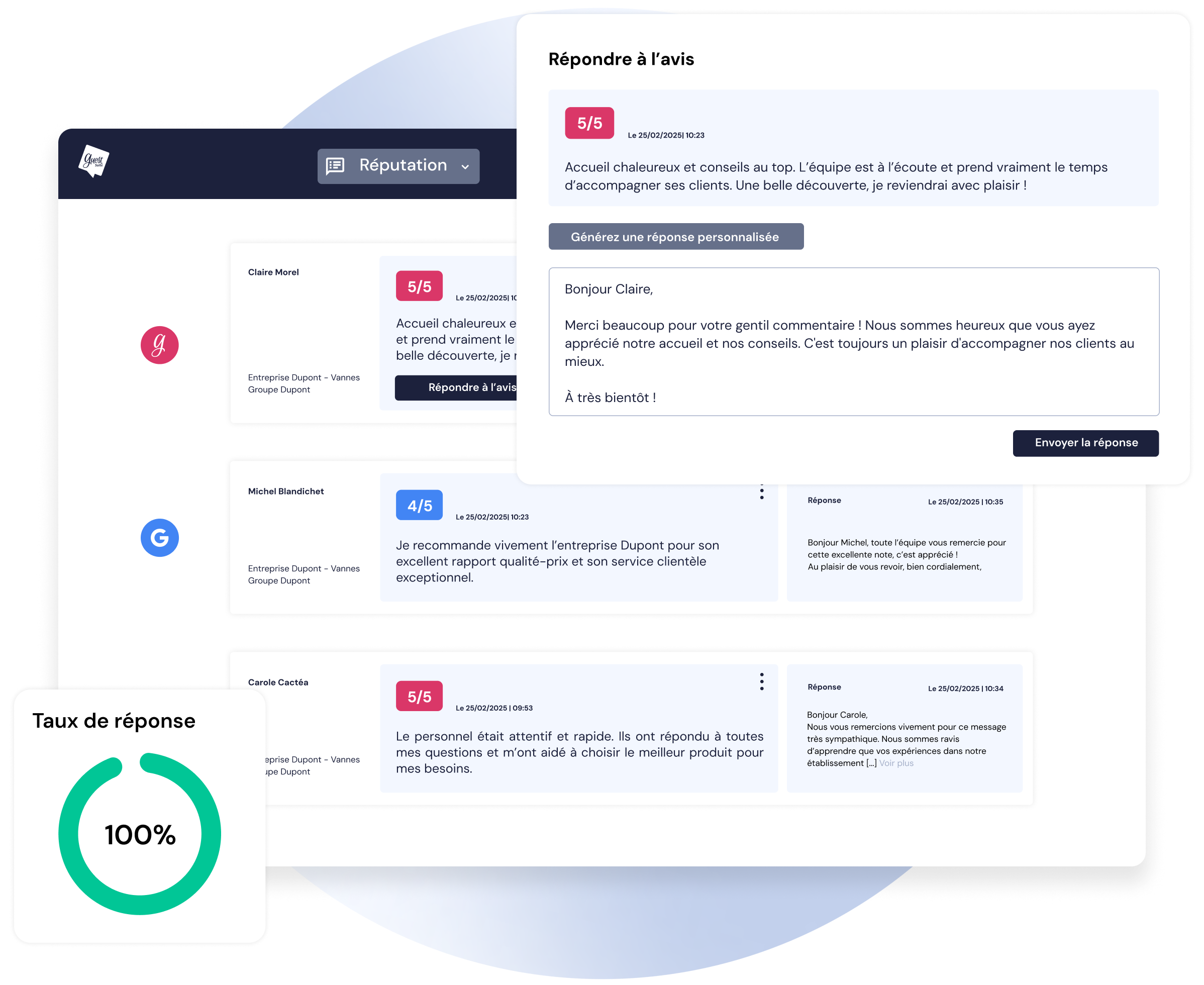 Avec Guest Suite, reprenez enfin le contrôle sur vos avis clients : centralisation, collecte, diffusion, réponse et analyse. Gagnez du temps, améliorez votre image de marque, et captez beaucoup plus de clients.
