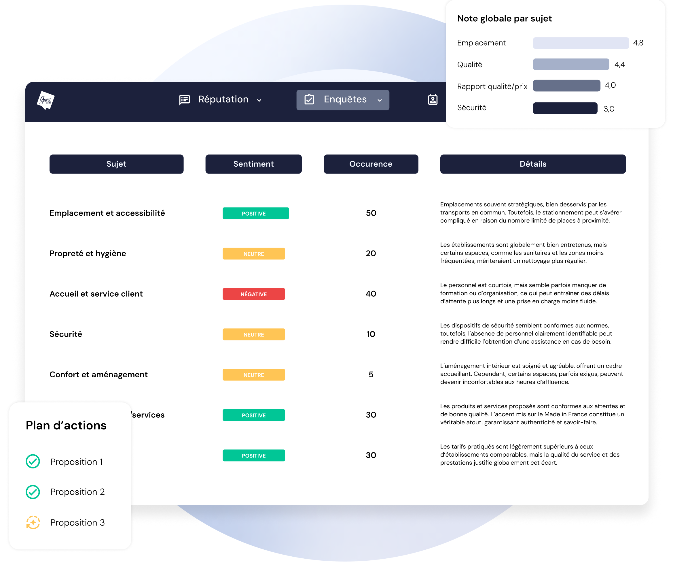Bénéficiez d'un tableau d'analyse concurrentielle permettant de suivre les avis de vos concurrents.